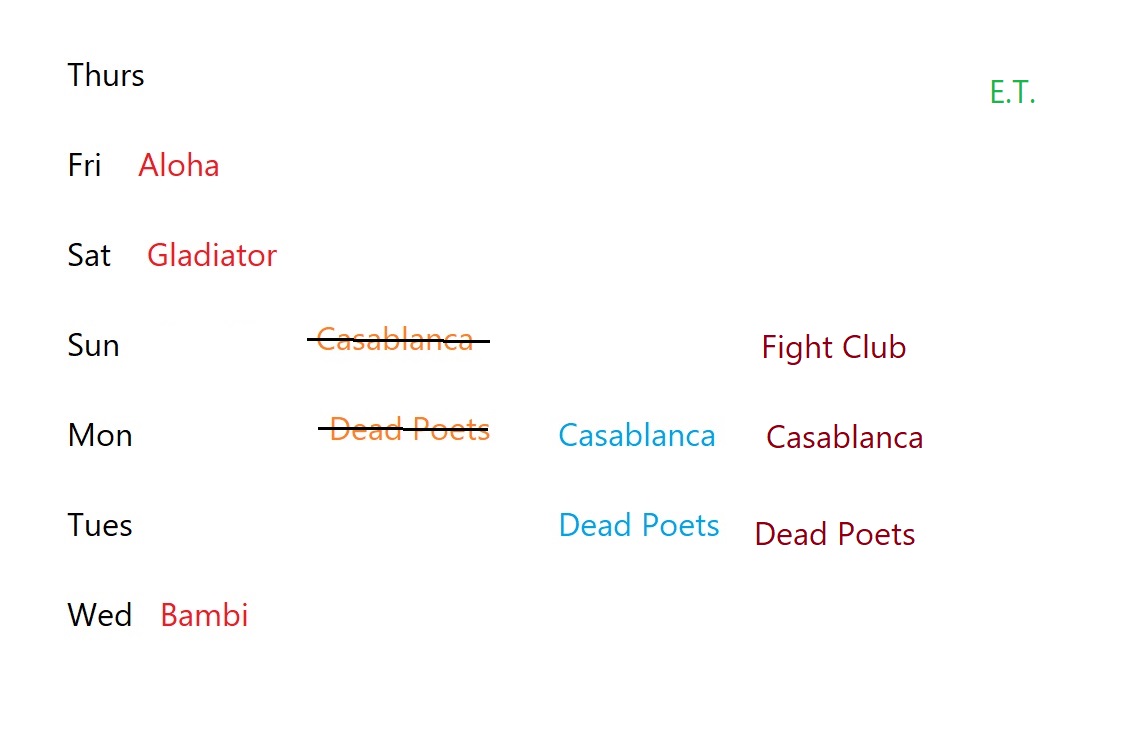 Load More Replies...5 doesn't work. They state fight club is watched in Sunday in the question. Then turn around and say either E.T. or Fight club are on sunday