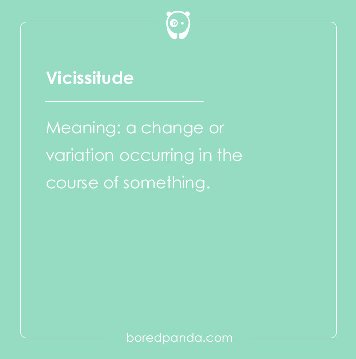 Vicissitude. [vi-sis-i-tood] Meaning: a change or variation occurring in the course of something.