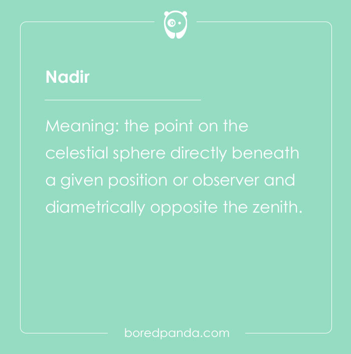 Meaning: the point on the celestial sphere directly beneath a given position or observer and diametrically opposite the zenith.