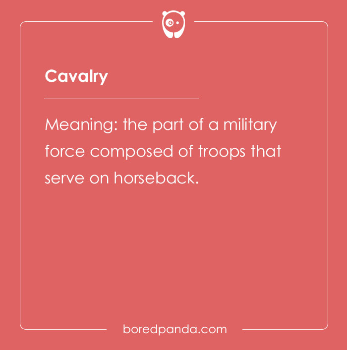 Meaning: the part of a military force composed of troops that serve on horseback.