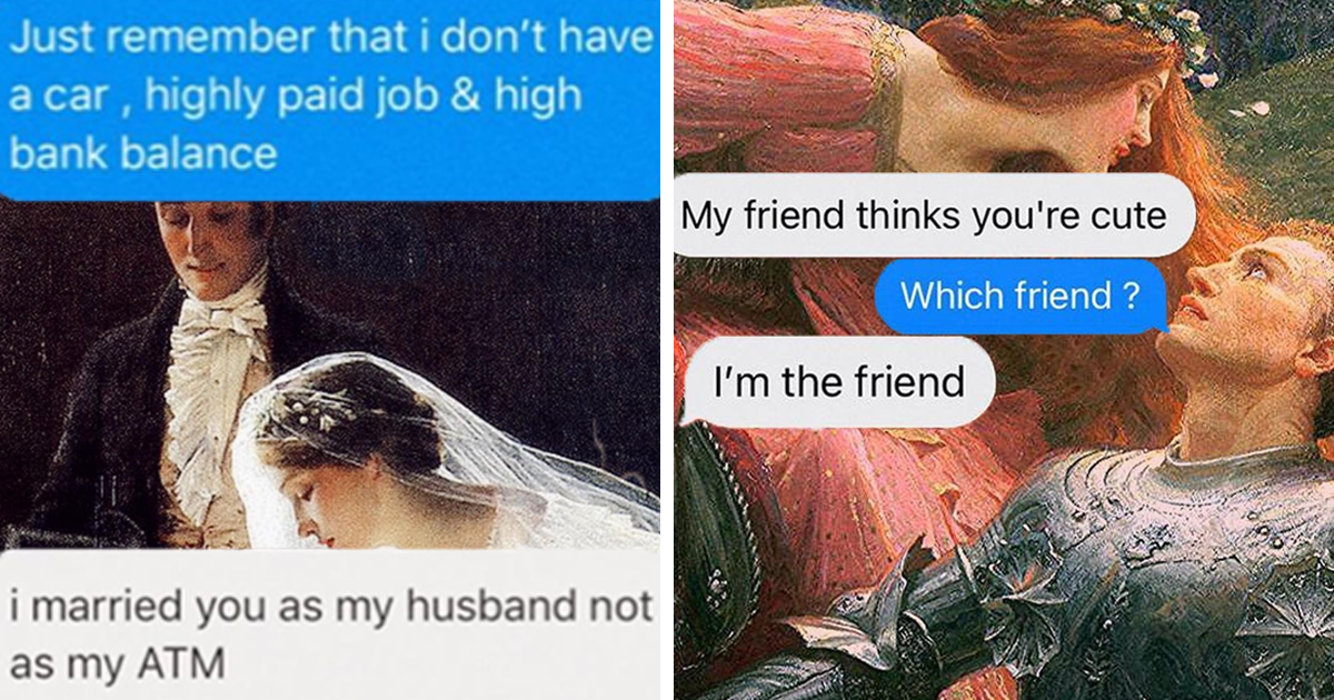 Paintings seemingly have infinite meanings, and the interpretation lies in the eye of the beholder. Some beholders' eyes are different than others, and what they see gives a completely new meaning. One of the people who have this special kind of eyes is Hassan Hassnaoui, who puts captions on various well-known paintings and expresses what he sees in them. It's as if these paintings were talking in modern times, through one of the most popular mediums in which contemporary couples communicate—messages. And it makes the paintings much more relatable, as sometimes it's very hard to connect to them in their original form. So much so, that his work is liked by more than 180k followers on Instagram and other social media.