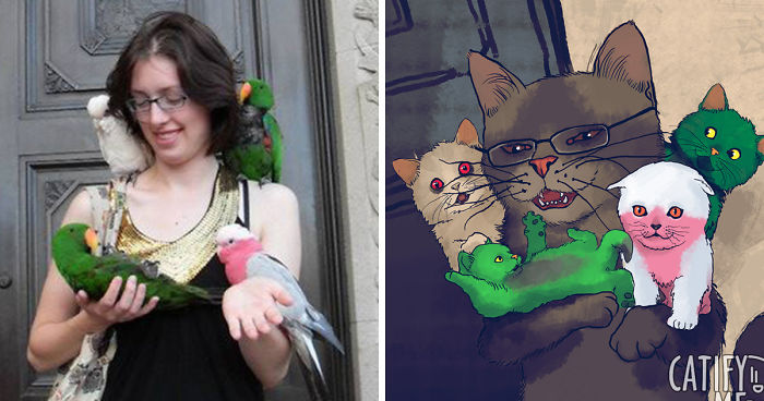 Love cats? Bulgarian artist Radoslav Dyulgerov a.k.a Catifyme took his love of cats to a new level. He skillfully turns people into cats to help them embrace their feline self. “Too often people grow tired of their human personality and I just encourage them to discover their better selves”, he says. He started almost three years ago and now has an impressive collection of furry … oops I mean fully clothed digital cats. Here are some of his most memorable drawings: