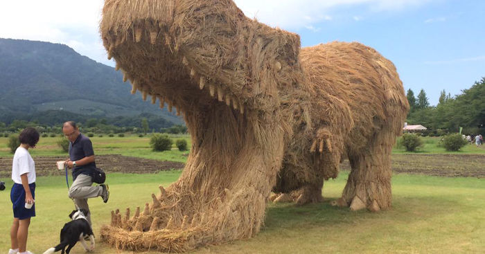 Giant Straw Dinosaurs Invade Japanese Fields After Rice Harvest
