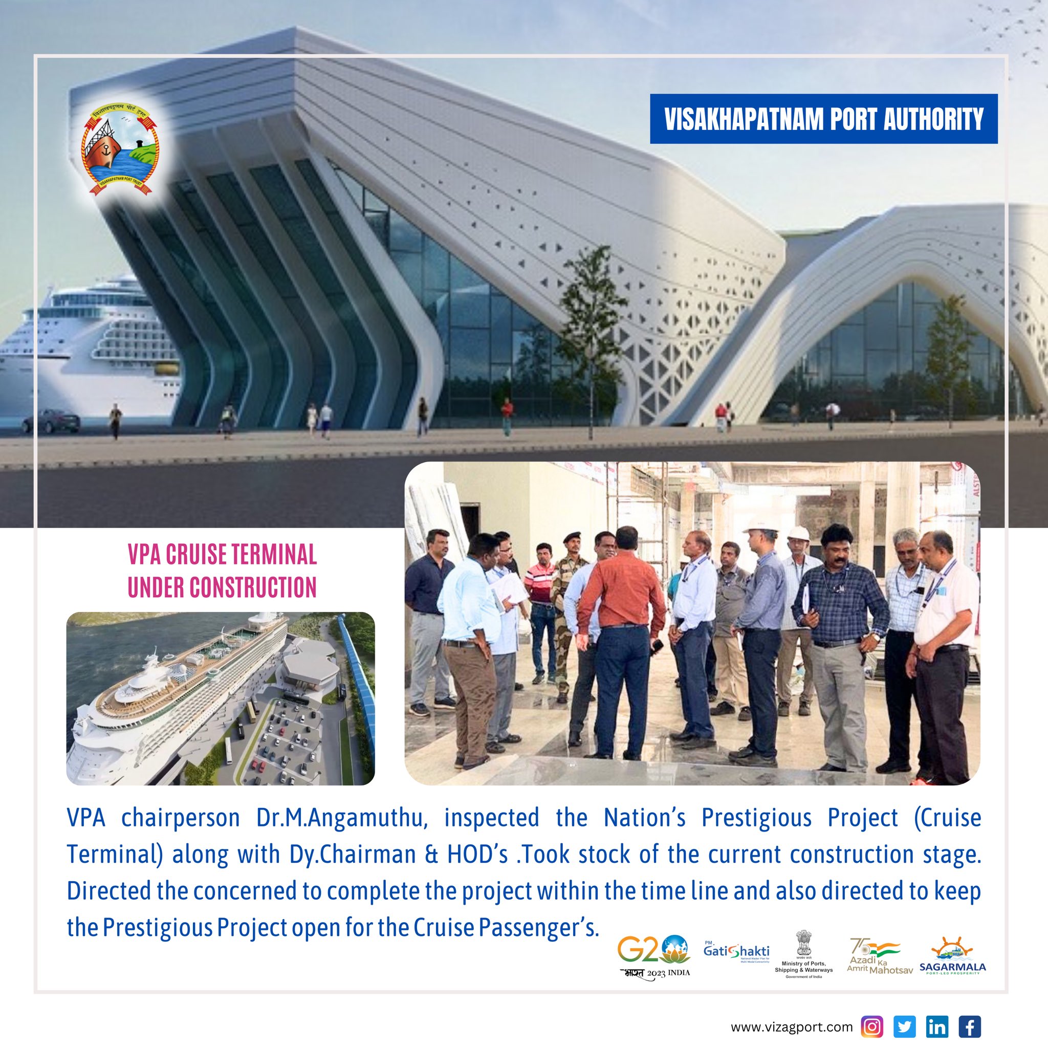Ugh…this is so misleading. The terminal was supposed to launch this fall and has been delayed. The first picture was one of several submitted and not the final design. There are no actual cruise ships that currently visit Visakhapatnam yet. The delay is until March and the angle of this photo is also misleading. It’s a beautiful building and once landscaped and after construction is completed, it will be exactly what was ordered.