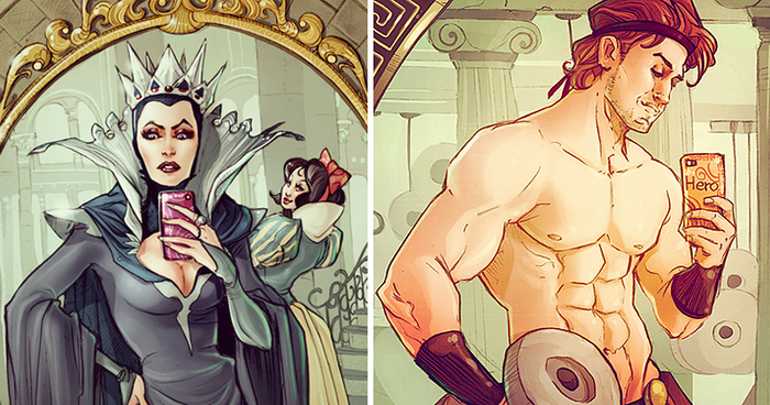 Have you ever wonder what it would look like if well-known Disney characters took selfies? Probably not, but Italian artist Simona Bonafini has taken it upon herself to give you a pretty good idea with her “Selfie Fables” series and has pretty much nailed it.