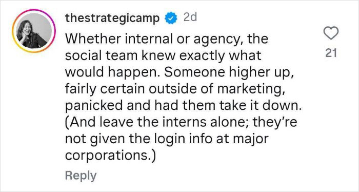 And, in a moment of poor judgment, they deleted the thread, resulting in a "Streisand effect": instead of going away, the screenshots from the thread went viral.