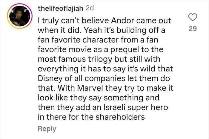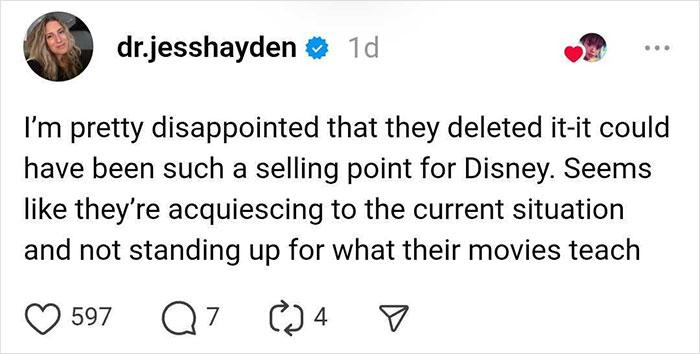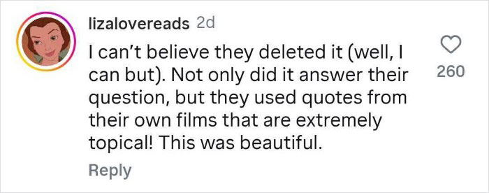 As of today, Disney has not addressed the deleted thread or the backlash. However, the comments under their other posts on Threads have been usurped by people posting the same quotes, GIFs, and screenshots from the previous thread.