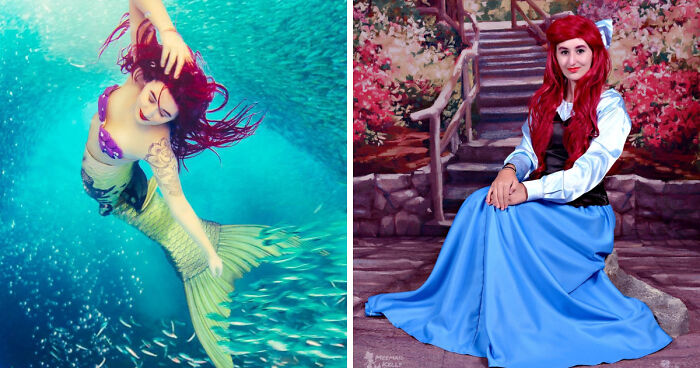 Kelly, dressed as Ariel, swims in open oceans, capturing every girls childhood dream