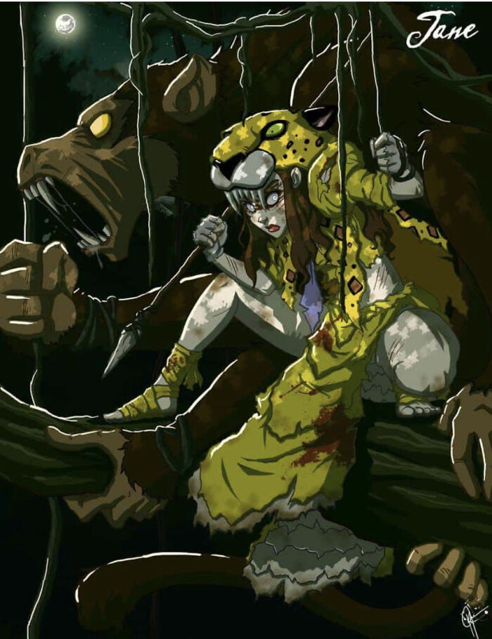 Upon looking closer I have concluded that the beast behind Jane is Cheeta the Chimpanzee.
