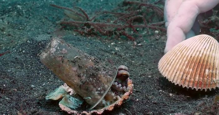 However, in the absence of natural materials, they also go for whatever they found on the ocean bed, like empty plastic cups or containers.