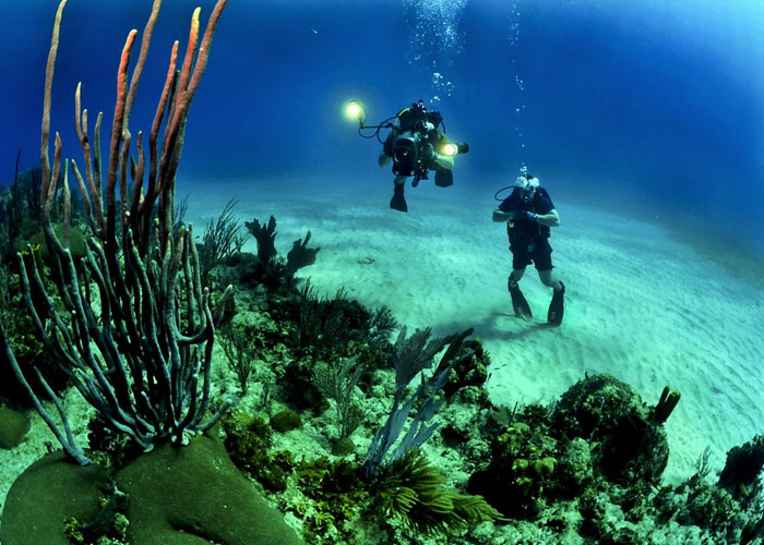 My Dad told me a story from when he was in college. Him and his dad went diving somewhere and he went into some kind of caves. After turning a corner and exiting another mouth of the cave, he was faced with the edge of a cliff with nothing but a black abyss below him. He said it was one of the most terrifying things he has ever experienced.