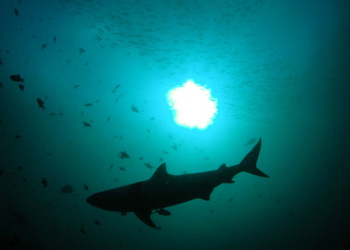 I was about to go on a night dive along the GBR outside of Bundaberg when I couldn't get my wireless watch to sync to my tank, so I waved my dive buddies on telling them I'd catch up later. I finally get the watch to sync and check in with the dive master and leap off the boat into the black water. I am really good at going down fast so I sink to the bottom and then shut off my flash light and start swimming to the divers in the distance. Night divers are not hard to find as they are the only source of light, so I keep my flashlight off and swim through the darkness towards the group. Every once in awhile I shine my light around to see landmarks and keep on a decent path. I started using a small coral outcropping as a guide. Just as I come upon it I shine my flashlight only to scare the p**s out of a shark that I only get a strobe like glimpse of as my light bounces off its snout and in a huge rush of bubbles going tearing off into the black. I calmly try to maintain my breathing so as to preserve my air and slowly swim to the group. I thought it was a nurse shark. I kind of still do. But I found out the next morning a tiger shark was curious about us and hanging around since the late afternoon. We ended up seeing it the next day as it swam around us in the distance. And then we even watched it attack a turtle for a half hour during lunch. So it may have been that bad boy I ran into in the pitch black ocean.