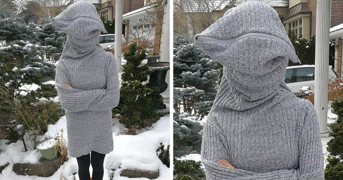 According to Ruth, the sweater is “more of a statement than a functional piece of clothing” as she can’t really see anything through it, but hey, if you really want to be alone, it’s perfect, right?! Plus, you can wear it in three different ways – cowl neck, off-the-shoulder, and leave me alone – so you’re not always isolated from the world! Check out her instructions on how to create the sweater on Instructables or vote for it on Betabrand so it can hopefully be put into production!