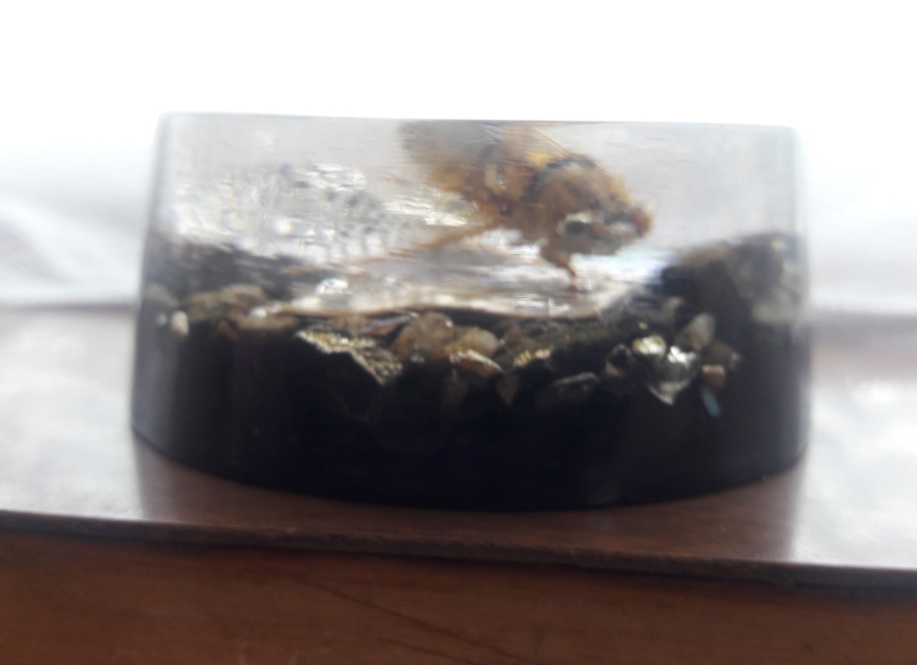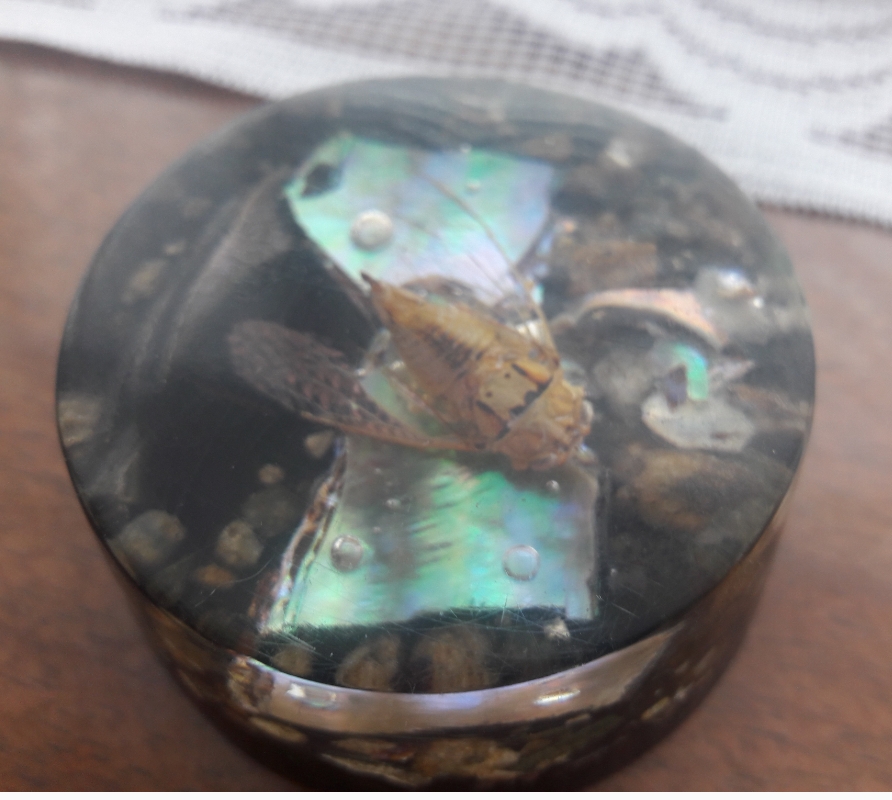 We set stuff in resin as a project when I was a kid, (I've still got mine ^-^) They told us to 'pick something from the garden' to preserve. I was looking and found a dead cicada that was pretty gold and green, and brought that so it could be honoured and stay pretty. Everyone else brought flowers though lol I felt like the weird one. Good thing I didn't find a hot dog in the garden 😆