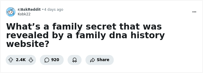 A few days ago, Reddit user Kobk22 asked everyone on the platform who had taken an ancestry test to share the family secrets the results had led to, and a lot of people came forward with the confessions they wanted to get off their chests.