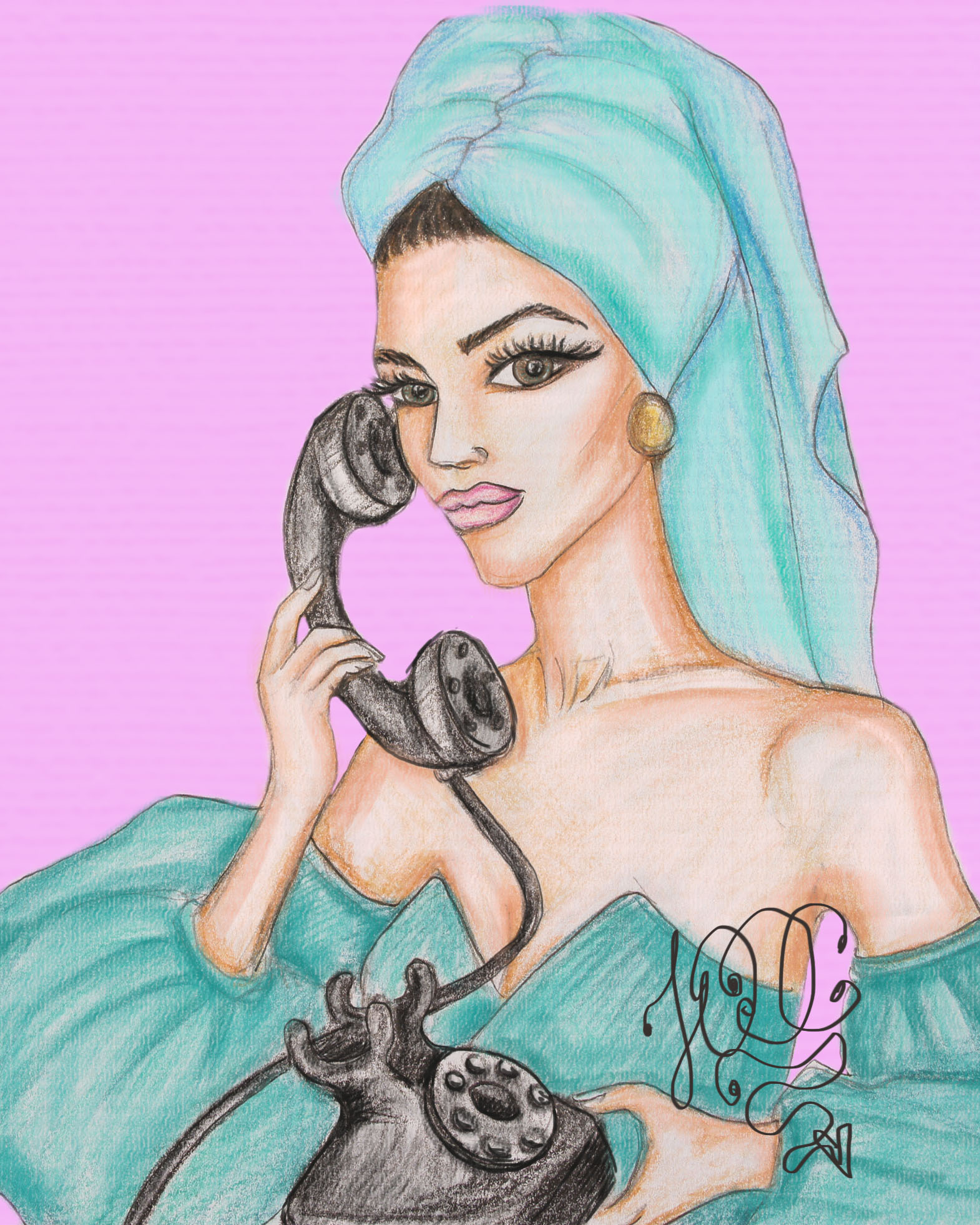 Woman talking on the phone. Retro. By Yulia Khardina