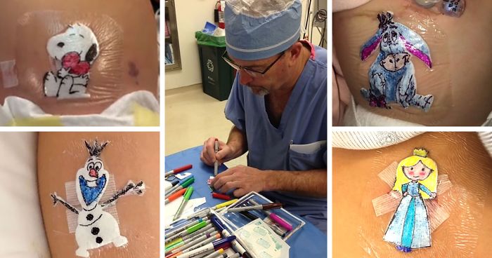 Dr. Robert Parry is more than just a surgeon. He’s a real human being. The director of pediatric surgery at Akron Children’s Hospital in Akron, Ohio, has been going viral for his unique way of making his little patients less scared. After he puts down the scalpel, Parry takes out his pens to hide their post-surgery scars with amusing cartoon drawings.