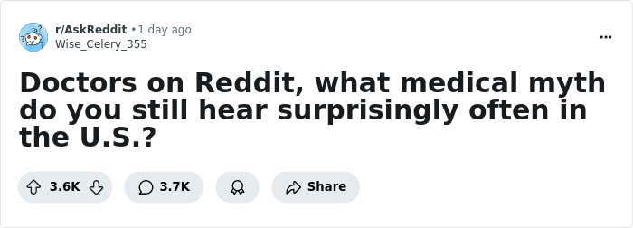 So when a Reddit user asked doctors to share the medical myths they still hear often, plenty of responses came in. And it’s concerning, because believing the wrong thing about your health can have serious consequences.