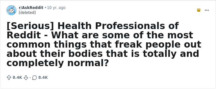 But in many cases, that fear is simply an overreaction. On Reddit, medical professionals pulled back the curtain on the most common issues people tend to panic about far more than they need to. Take a look below, and as always, trust a qualified doctor over a search bar when something truly worries you.