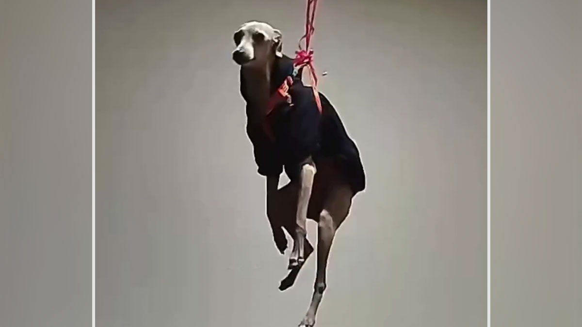 An adult Italian greyhound weighs around 5kg and it takes one cubic metre of helium to lift one kilogram, so without taking the harness into account it would require five cubic metres of helium to lift that dog. Add in the weight of the harness and you're looking at a balloon the size of a Fiat 500.