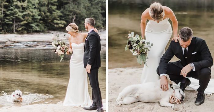 When Rebecca Simpson and Charlie Hart exchanged vows at the beautiful Brown Mountain Beach Resort, taking photos to immortalize their union seemed like a walk in the park, after all, it’s just a couple of beautiful snaps by the water. Well, that’s when their adorable pooch Bernie decided to change their perfect plans.