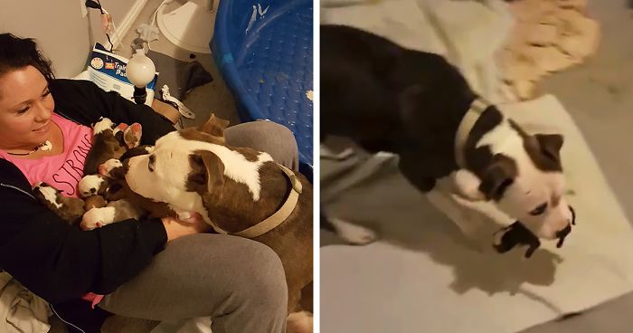 Rescue Pit Bull Puts Her 11 Newborn Puppies Into Foster Mom's Lap Showing How Much She Trusts Her