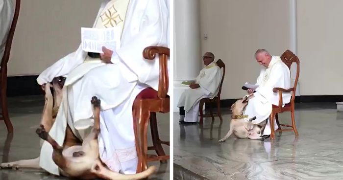 Priest Has An Adorable Reaction To A Dog Who Crashed His Church Service