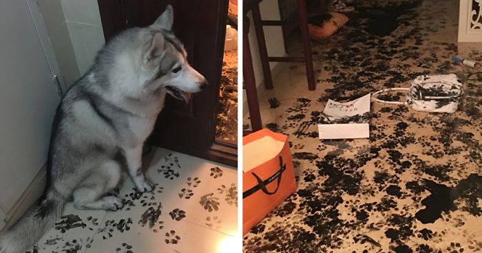 Who said interior design is not for dogs? One Husky decided to prove the doubters wrong as soon as his owners went out to the movies. In only 3 hours, the aspiring artist turned the whole apartment into his canvas.