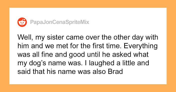 One dog owner who always thought it was funny when dogs have human names named his doggo Brad. It doesn’t sound like a big deal, or a deal at all, to be honest, until their sister came over one day with her boyfriend. “Everything was all fine and good until he asked what my dog’s name was,” Brad’s owner wrote in the post on r/AITA.