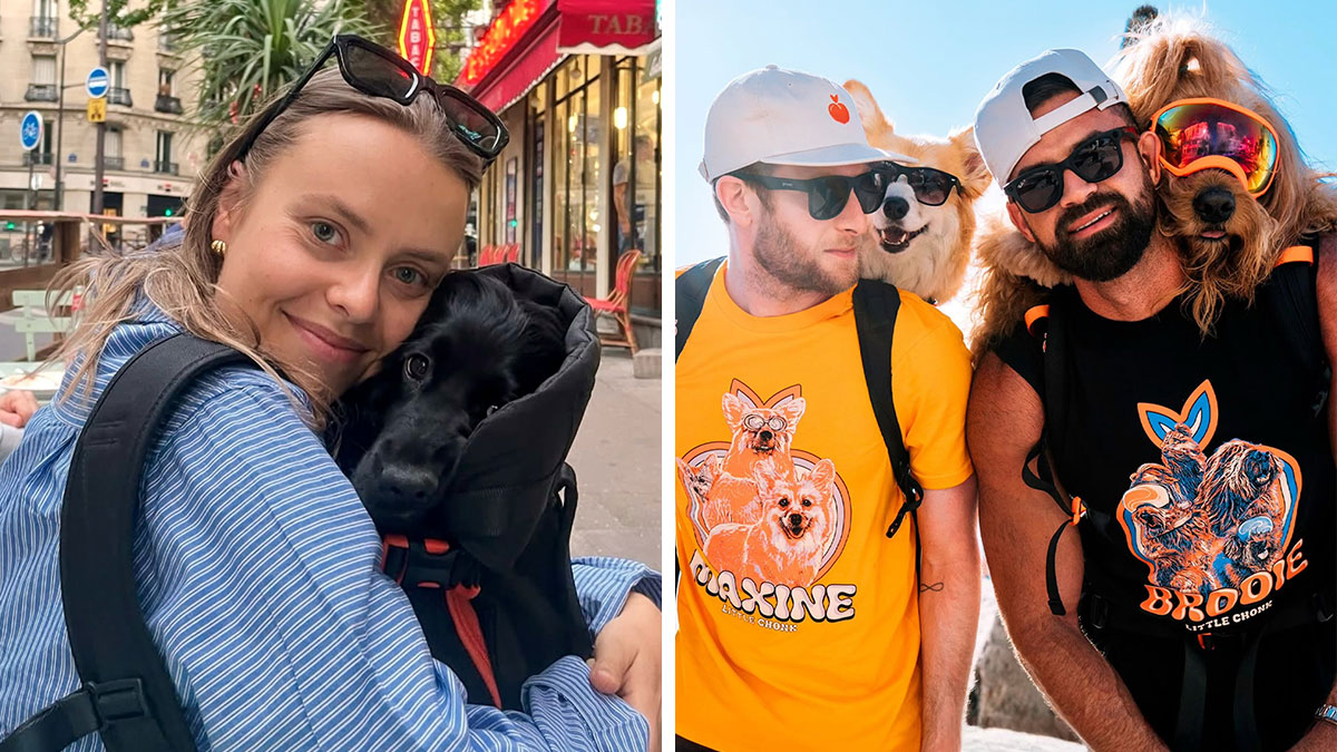 Scroll down to see some of the pups venturing through city streets in Bryan’s backpacks, captured in wholesome photos with their owners.