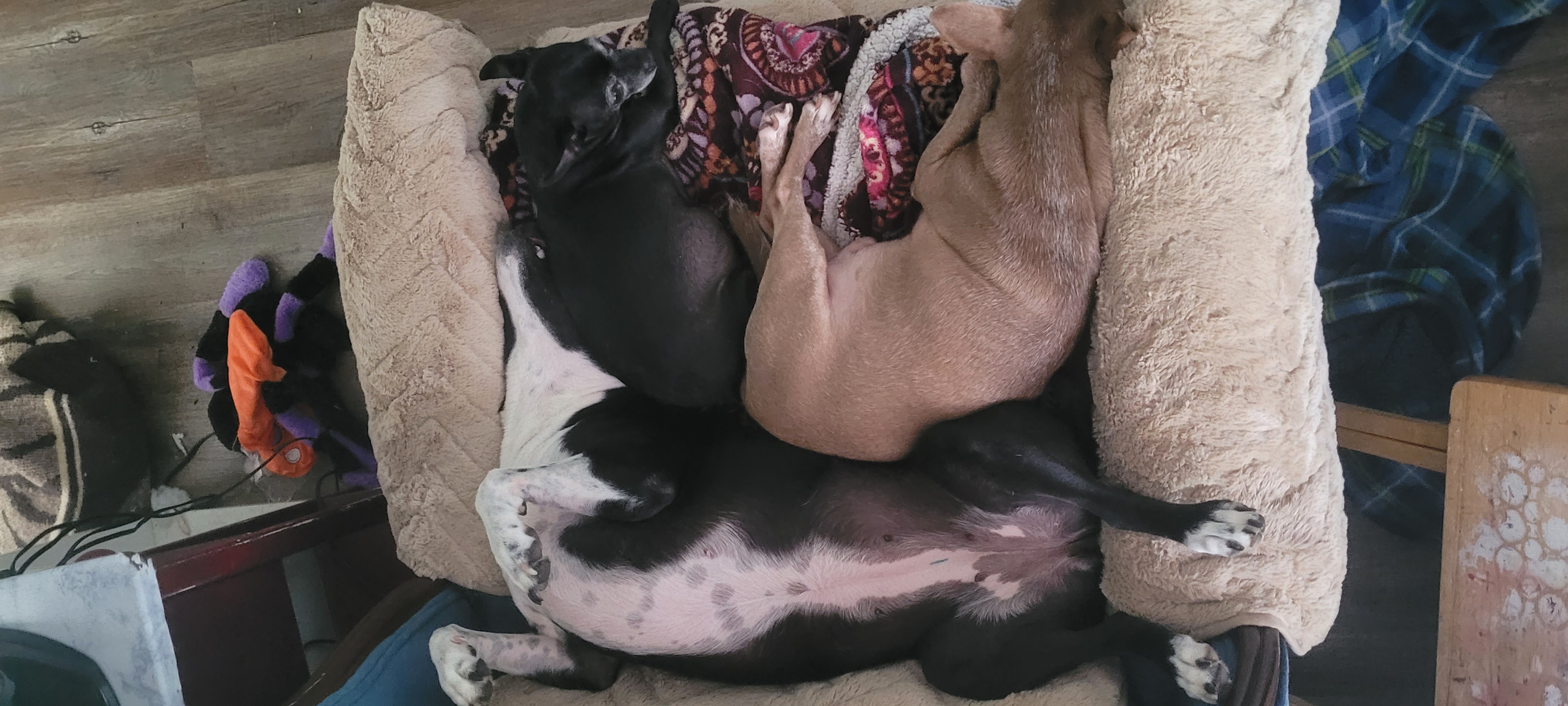 Load More Replies...I have two very tightly bonded sister dogs... they always sleep pressed as close to me as possible... partly because they are always cold, so they spoon me a lot.
