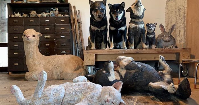 Artists often use a certain reference in order to make their art quicker and more accurate. What doesn’t happen often, though, is when the reference “decides” to be as close to the art piece as possible. Case and point—sculptor Mio Hashimoto and her pet dog Tsuki. Mio is a wood sculptor, and she often carves life-size animals out of it. Tsuki, on the other hand, is her muse and her main point of reference when it comes to sculpting dogs. They both hang out in the artist’s workshop among shavings and animal sculptures. One day, Tsuki decided to become like the sculptures that her owner made and blend in between them. Having an eye of an artist, Mio quickly spotted the potential for confusion and captured it.