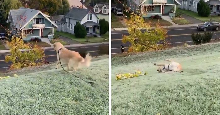 Recently, one such good boy named Leny went viral for his most favorite pastime activity. It’s not chasing birds that he loves the most nor cuddling with his favorite toy — Leny just absolutely can’t get enough of sliding down a hill!