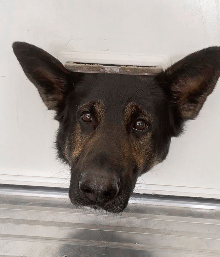 My Dog Greets Me Through The Cat Door Every Time I Get Home