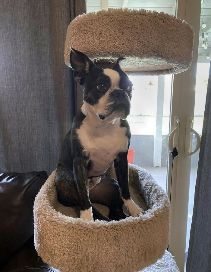 She Sits On The Cat Tree To Watch Her Dad When He's Outside... Very Glad I Put A Weight On There