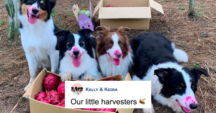 The farm Kelly and Keira and their friends picked dragonfruit at is about 10 hectares big, and it also has bananas, guavas, loquats, and papayas. “It’s quite easy for the dogs to pick the dragonfruits from the trees because the fruit grows on cactus plants, conveniently hanging down,” Kelly and Keira’s owner added.