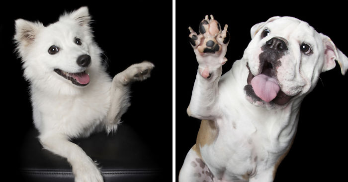 Internationally renowned animal photographer Alex Cearns has released her latest series of fun pooch pics called “Paws Up”. Her images showcase delightful dogs with their paws in the air (like they just don’t care!).