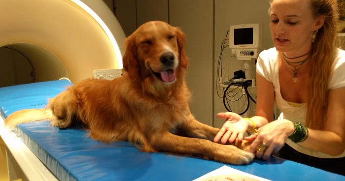 Scientists at the Family Dog Project in Budapest used fMRI to scan 13 family dogs’ brain activity when hearing words. The interesting thing is that pups had to lie there completely motionless, sometimes for up to 8 minutes for an experiment to work. How did they get them to do it? Researchers told The Huffington Post that the most important thing was for the dogs to trust them and be praised.