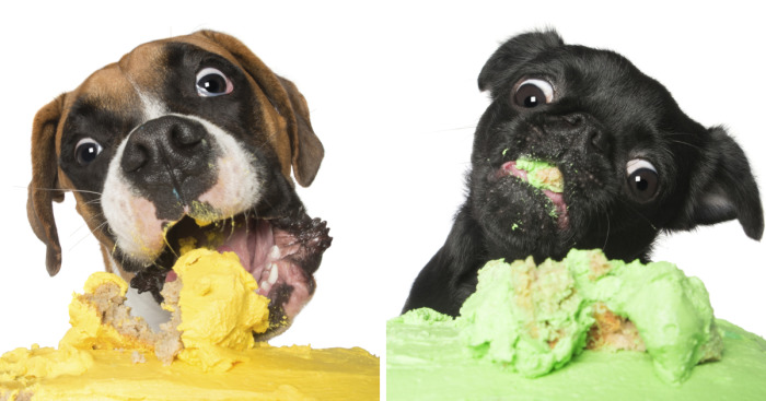 Called “Dogs VS Cake” Alex’s images are colorful, quirky and hilarious, and show our canine besties chowing down on their respective cakes with absolute glee. The cakes were crafted by dog bakery Barkday Paw-ty and contained dog specific ingredients, and best of all (according to the dogs) was that the leftovers were taken home. Please enjoy, ‘Dogs VS cake’. Just because.