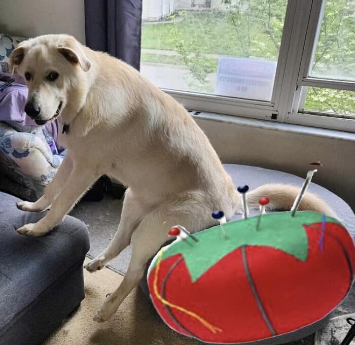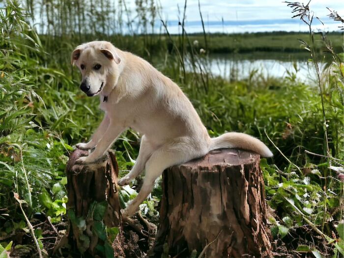 Having captured one of these hilarious moments, the author shared it with fellow dog lovers in the Dogspotting Society Facebook group and encouraged them to do some editing magic to make things even more fun.