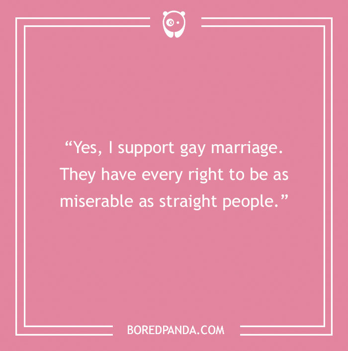 “Yes, I support gay marriage. They have every right to be as miserable as straight people.”