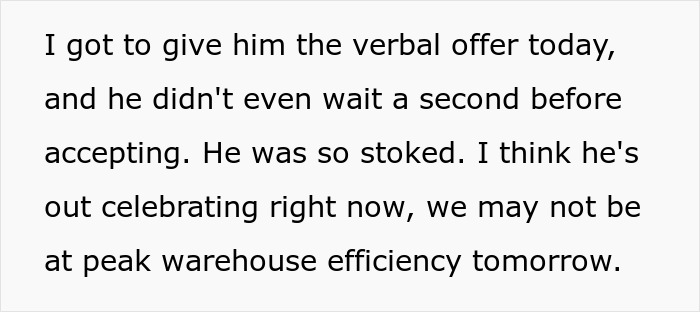 Meanwhile, many people in the comments also noted that the situation described in the original post (more precisely, its first part) is quite typical for some of them. “Exact same thing happened to me in 2017… I was the warehouse guy… needed a job. In a foreign country with a new baby,” one of the commenters wrote. And have you, dear readers, ever encountered anything similar in your work practice?