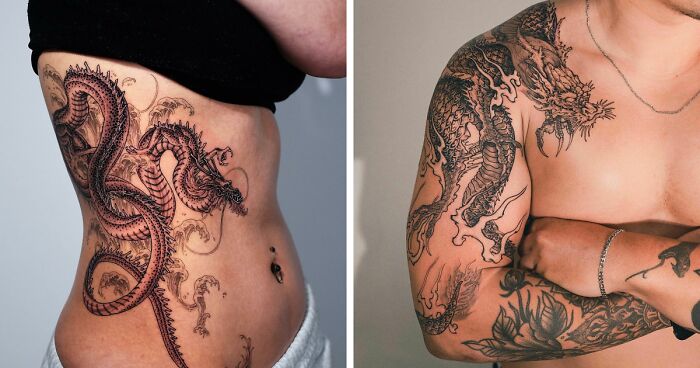 No two dragon tattoos are alike. Each tattoo blends ancient folklore with modern artistic techniques. So, as you look through these best dragon tattoo ideas, it is essential to approach them with cultural sensitivity. Find an artist who understands the sacred symbols associated with the dragon for each culture.