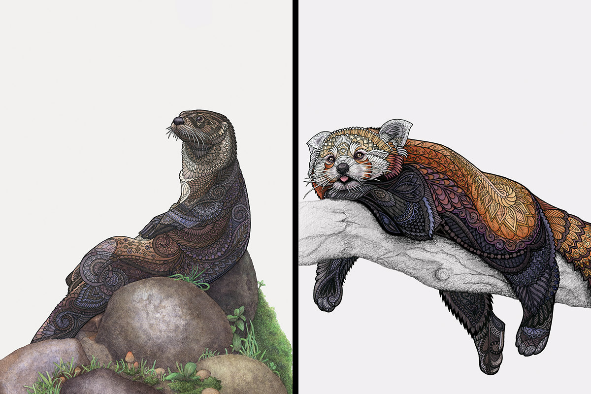 I use my intricate drawings to question the relationship between human beings and animals. Humans feel an intense connection to animals, both in the deep bonds we can develop with specific animals and through their symbolic and mythological importance in human cultures.