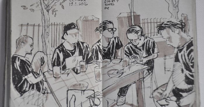 A date with my boyfriend, someone noticed me drawing and said hello. Solo