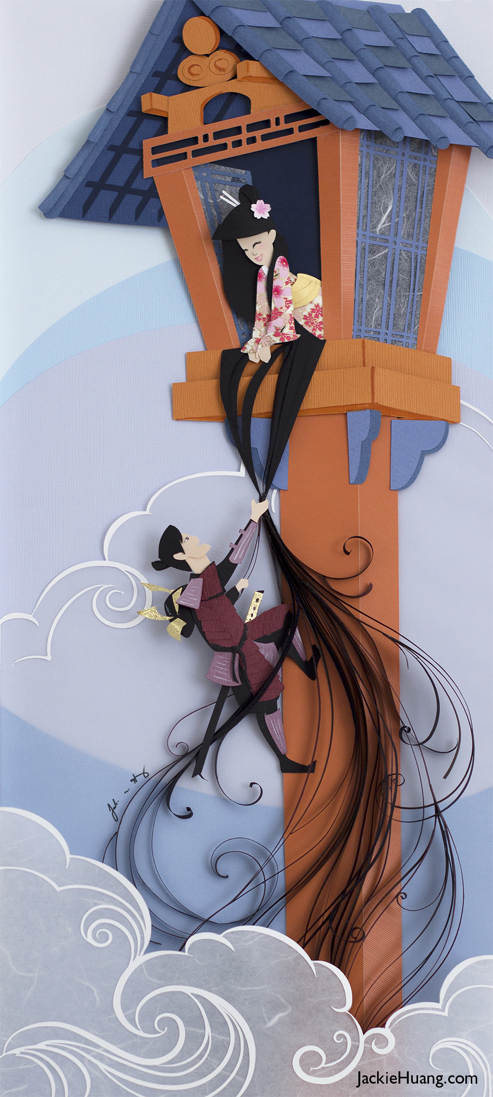 Intrigued by her use of paper, we questioned Jackie about a project where the unique characteristics of paper were either advantageous or challenging. Huang elaborated on her piece, "Rapunzel 3.0", where she used a quilling technique to create the hair. She revealed, "However, I can’t exactly control how the paper is going to curl. If it’s too tight or too loose, I can try to fix it, but since paper has a memory, after a certain point, it will get confused and won’t work with me anymore."