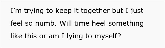 I did wonder if he was someone prone to hyperbole. My dad will say pretty exaggerated stuff to make his statements “more colorful,” but not really mean them. (It has definitely caused some problems.) That was the only sliver of hope I could see for possibly moving past what he said. Unfortunately that wasn’t the case. I feel so horrible for her :(