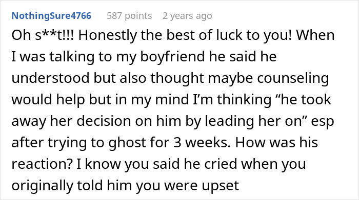 Load More Replies...He later admitted he meant it in another discussion - it was how she was during s*x. He found her repulsive during one of the most private of acts and when she'd shared herself and made her most intimate self vulnerable to him. That's a fundamentally hurtful thing to hear. People thinking it was a poor choice of words, it wasn't, he admitted he meant it and disappeared for 3 weeks afterwards! If she can't get over it, well, that's up to her. We can't always judge how we'd feel unless in that situation ourselves.