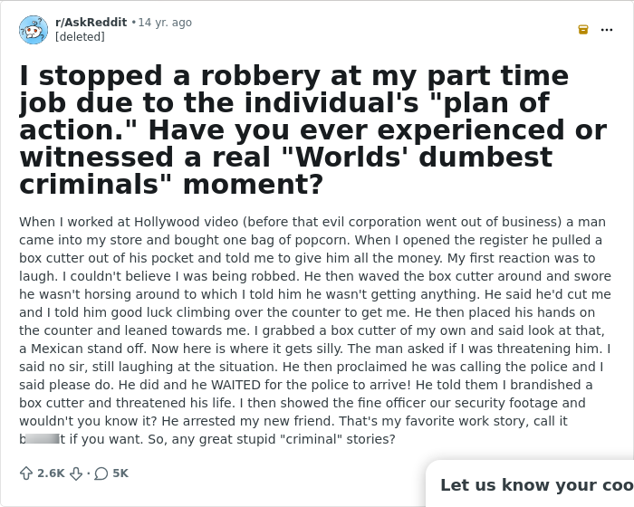 Speaking of which, when someone online asked, “Have you ever witnessed a real ‘world’s dumbest criminals’ moment?” the answers were hilarious, shocking, and sometimes unbelievable. Keep scrolling to see some of the wildest real-life criminal fails.