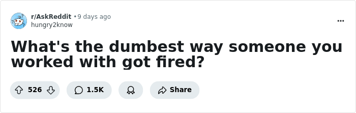 Someone asked “What's the dumbest way someone you worked with got fired?” and people shared their best stories. So get comfortable as you read through these folk’s misadventures, upvote the best (or worst) ones and be sure to add your own thoughts and experiences to the comments section down below.